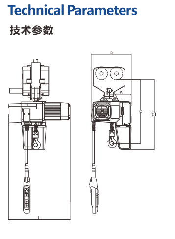 所有電器連接均為插入式——即插即用通用型懸掛機構,既能用于KBK標準軌道又可與小車快速連接